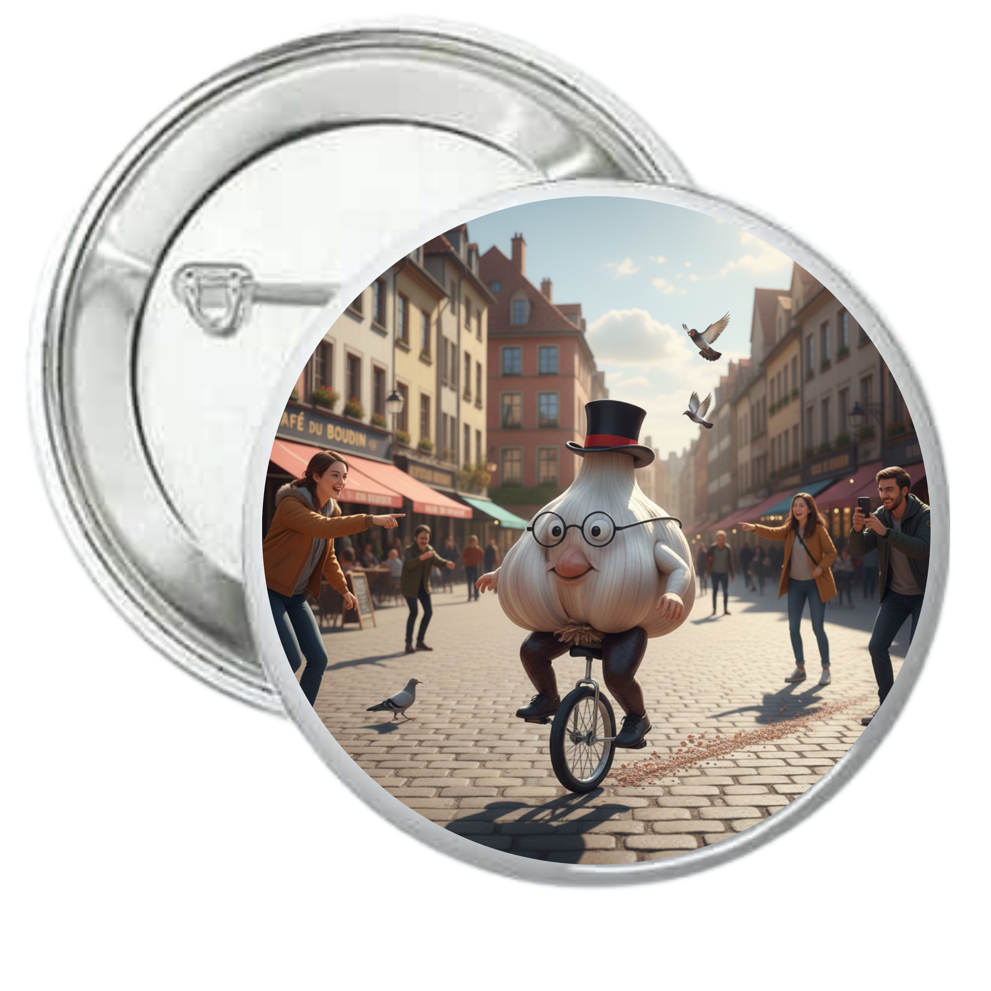 Todos los diseños de camisetas también disponibles en chapas con alfiler posterior.